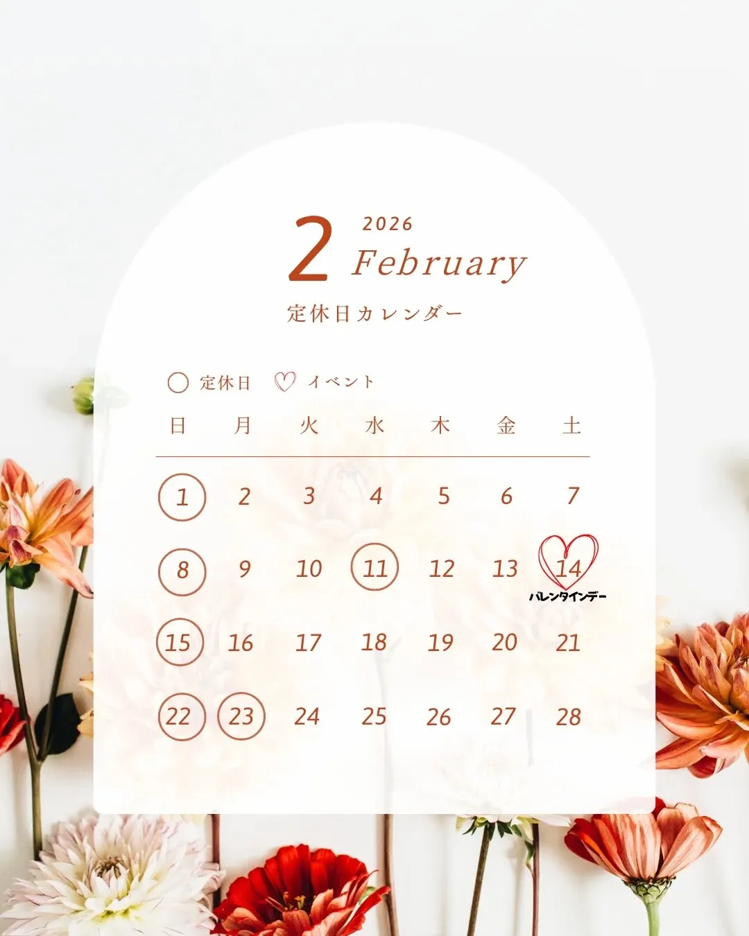 🗓 2月の定休日