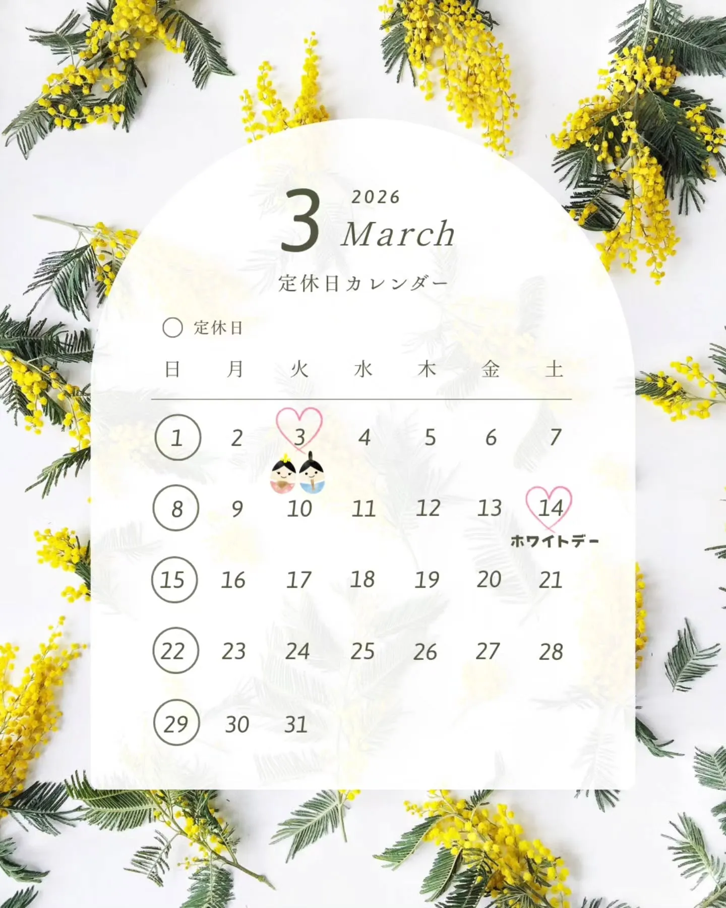 📅 3月の定休日